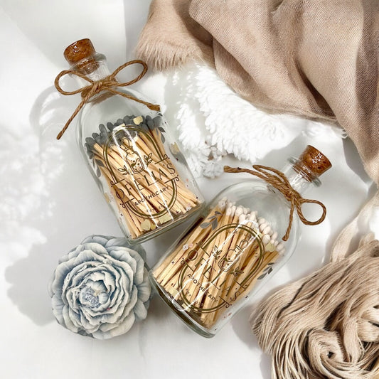 Luxury Matches White Tip in Oval Glass Cork Bottle & Striker
