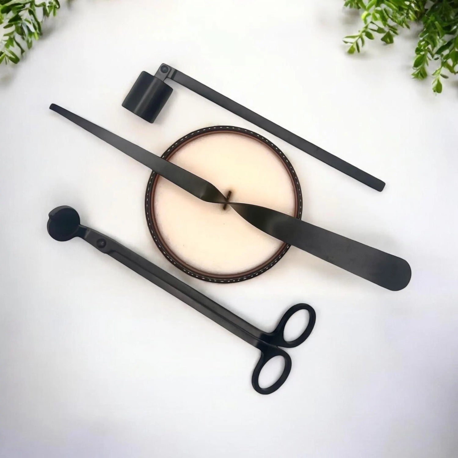 Our candle care kit includes a sleek wick trimmer and elegant snuffer, designed to ensure a clean, even burn and safe extinguishing for a perfect candle experience.